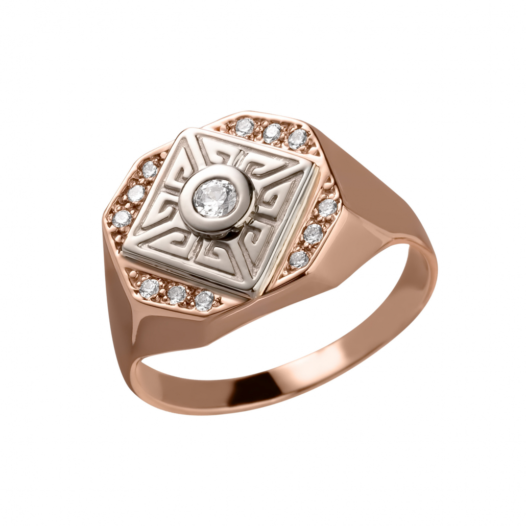 Кольцо-печатка с фианитом из золота