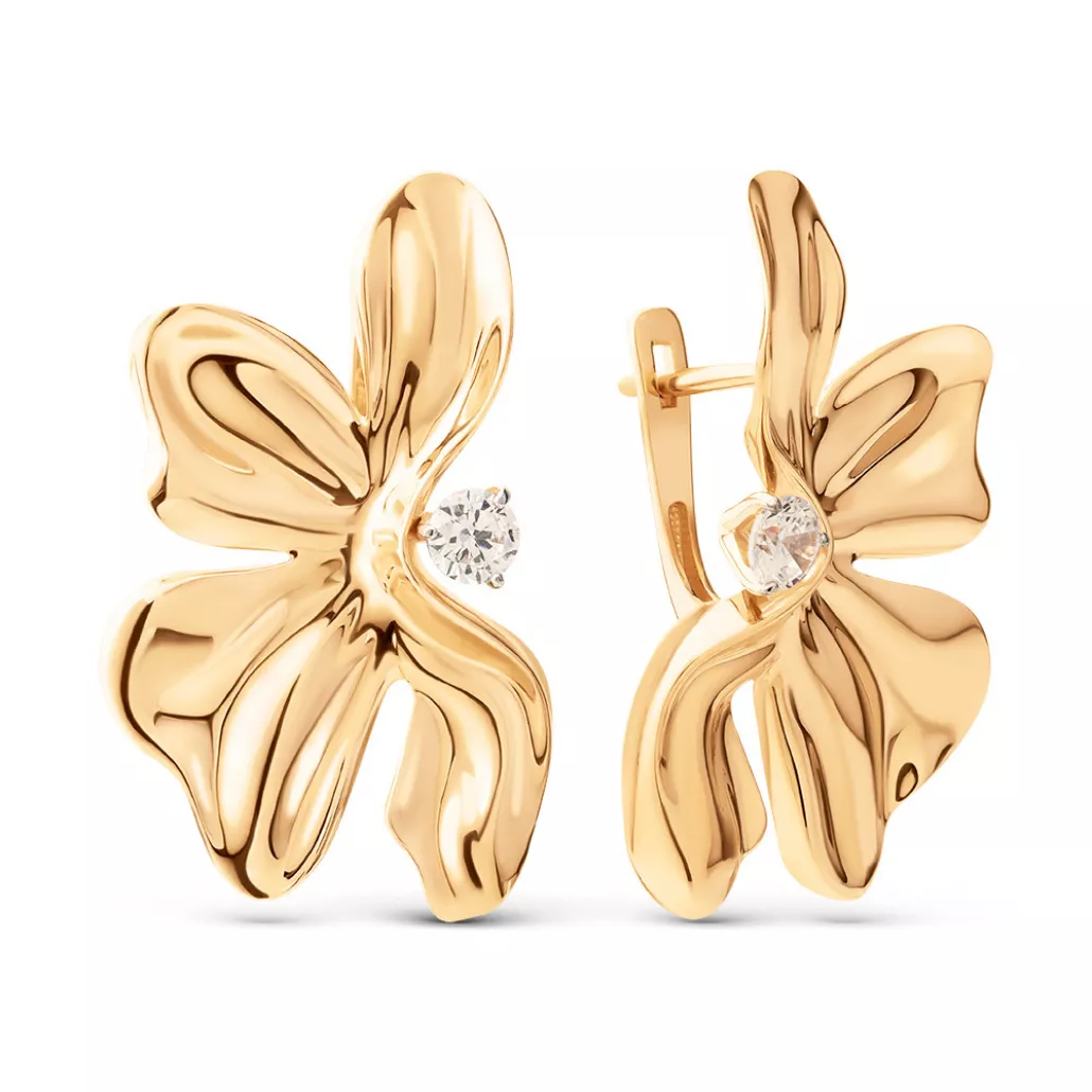 - Золотые серьги 585, женские, с фианитом