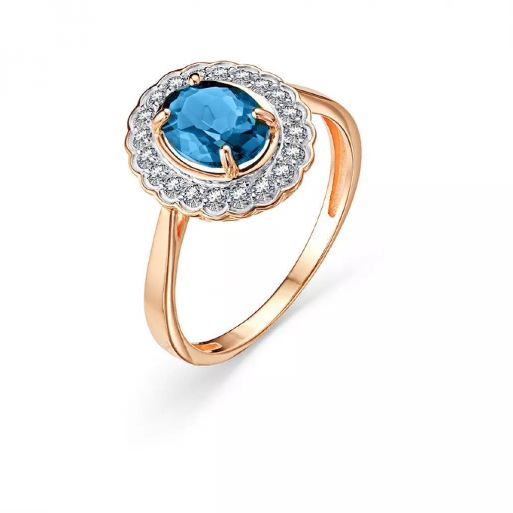 - Кольцо с топазом и фианитом из золота