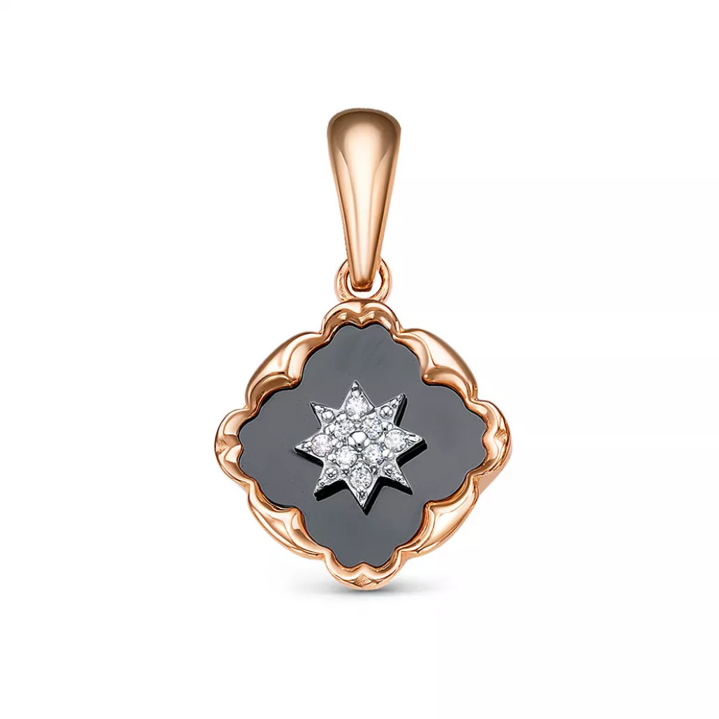 Подвеска с ониксом и фианитом из золота