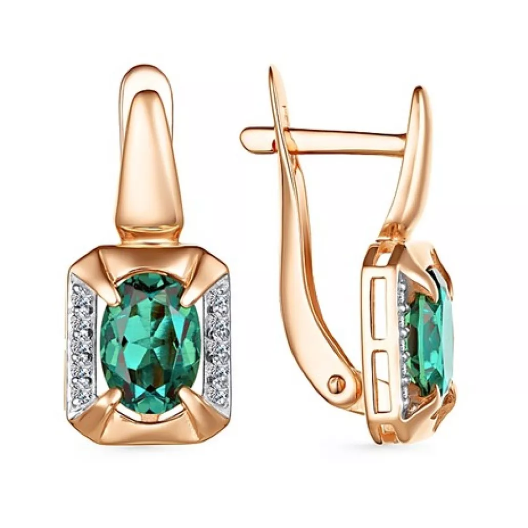 Серьги с фианитом и изумрудом из золота