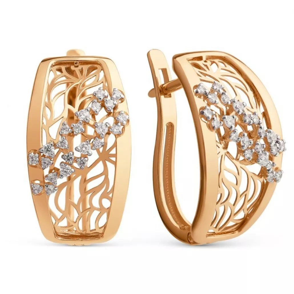 - Золотые серьги 585, женские, с фианитом