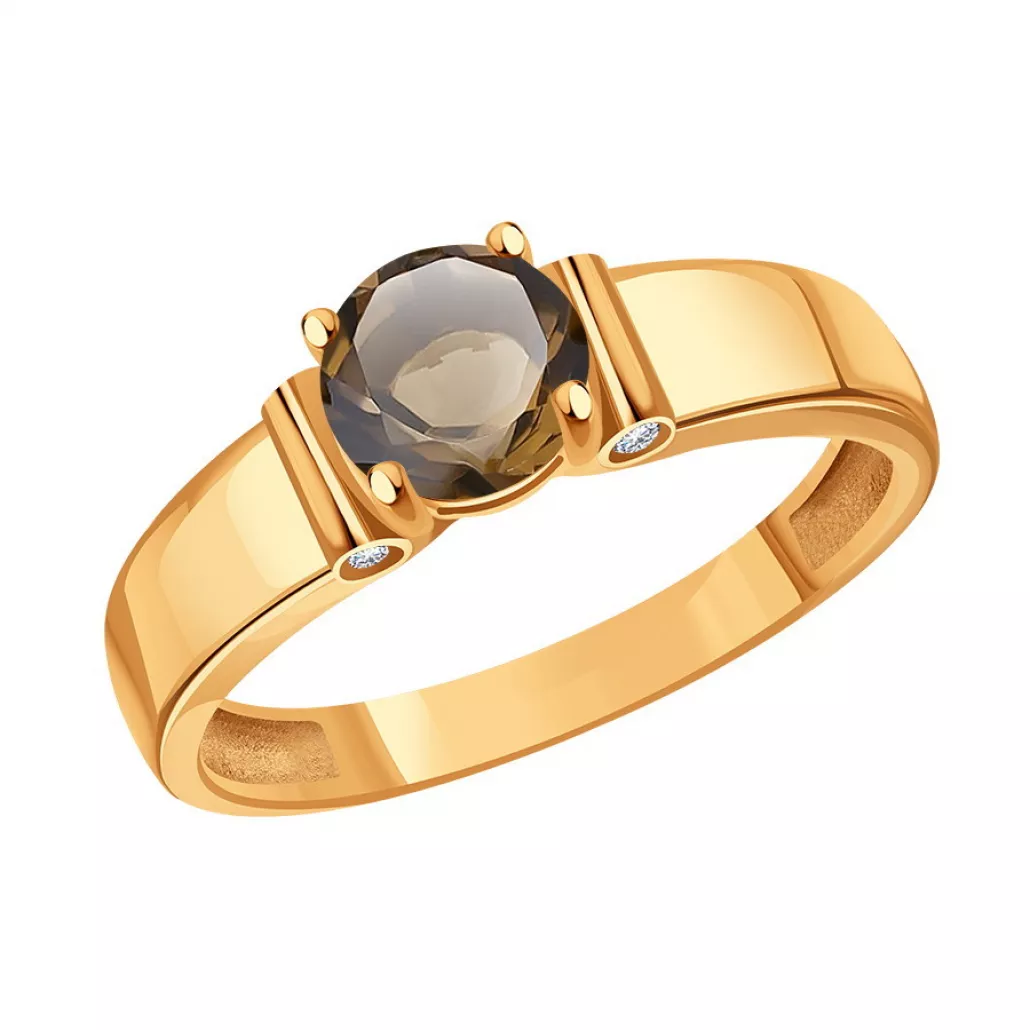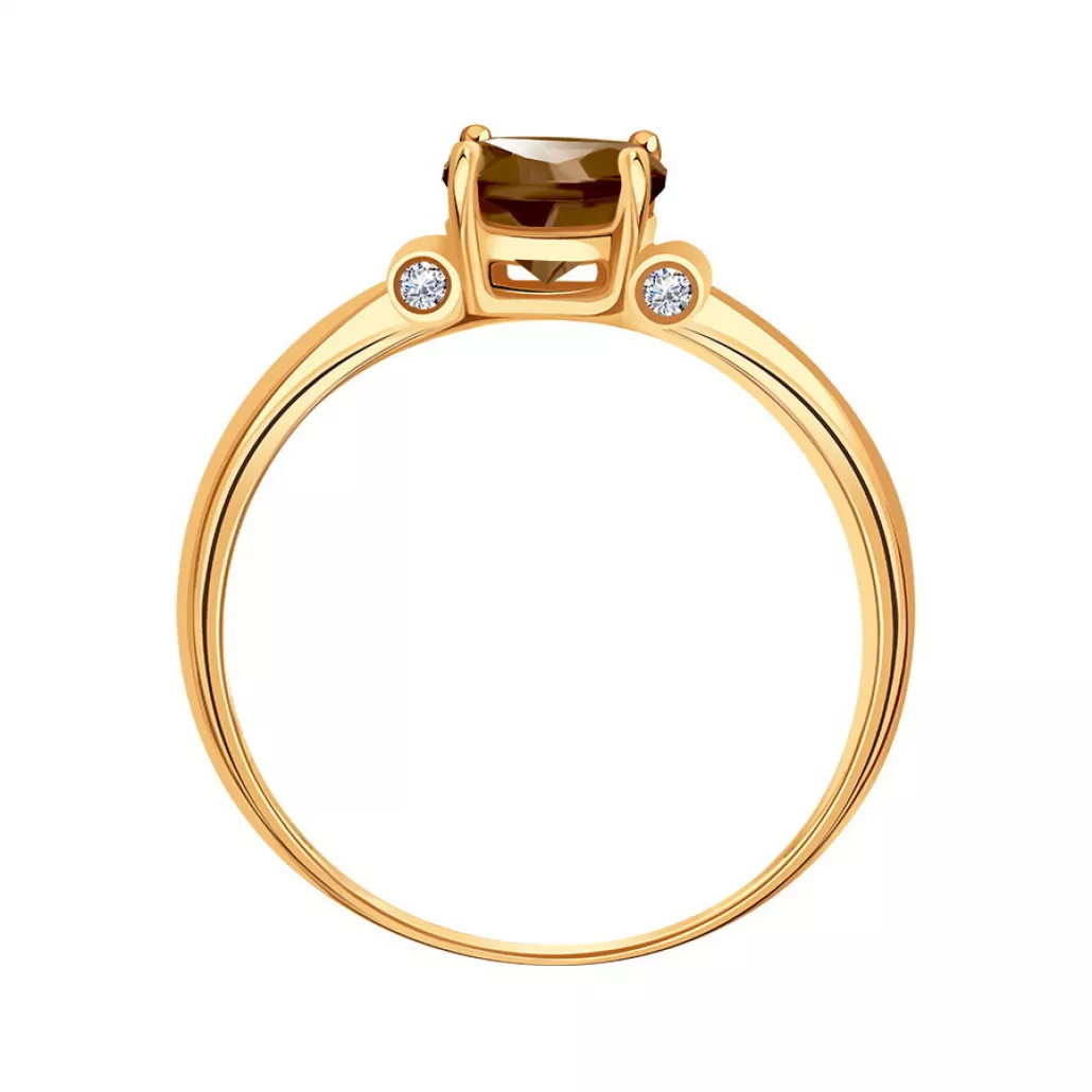 - Кольцо с фианитом и раухтопазом из золота
