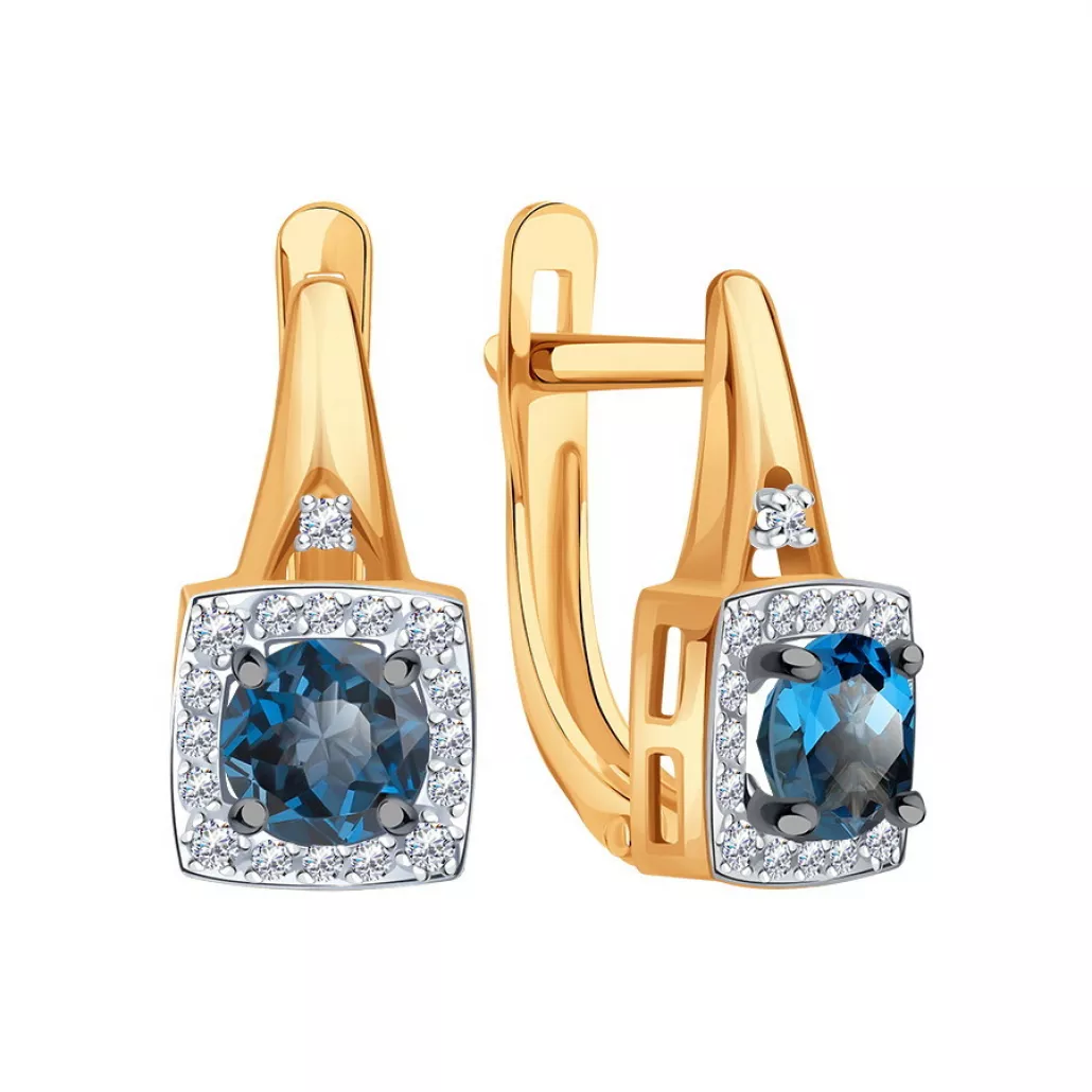 Серьги с топазом и фианитом из золота