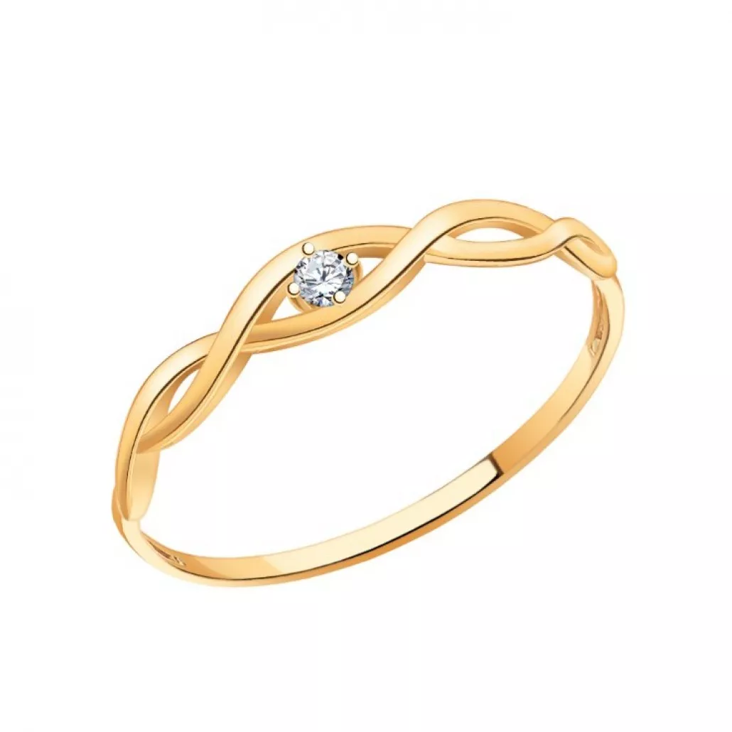 - Золотое кольцо 585, женское, с фианитом, размер 16.5