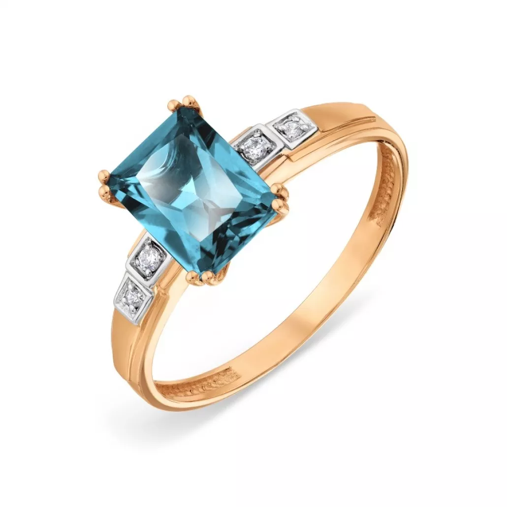 - Золотое кольцо 585, женское, с топазом и фианитом, размер 18.5