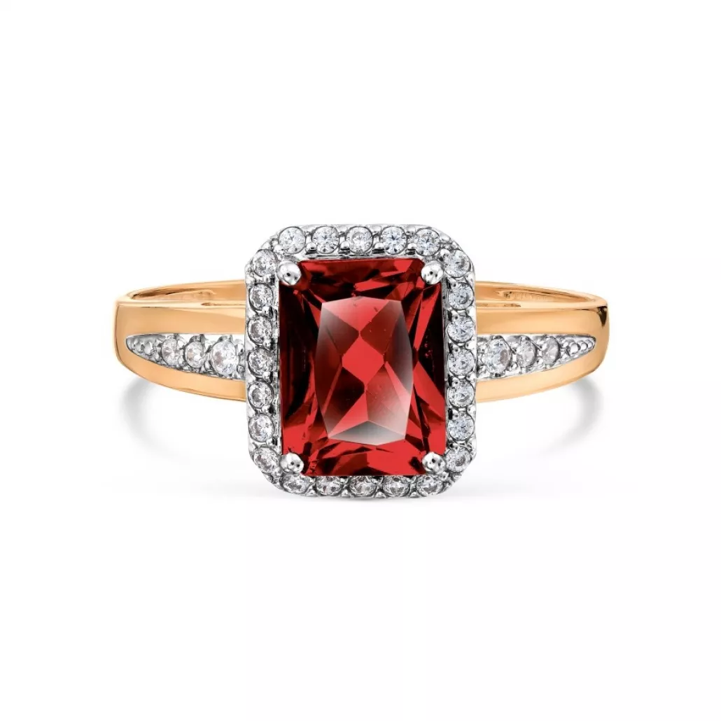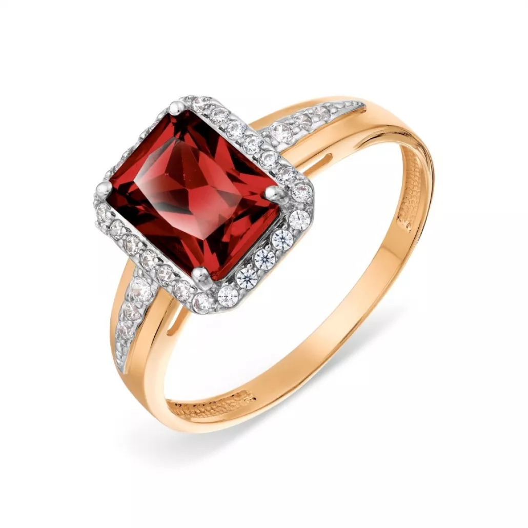 - Золотое кольцо 585, женское, с фианитом и гранатом, размер 17.5