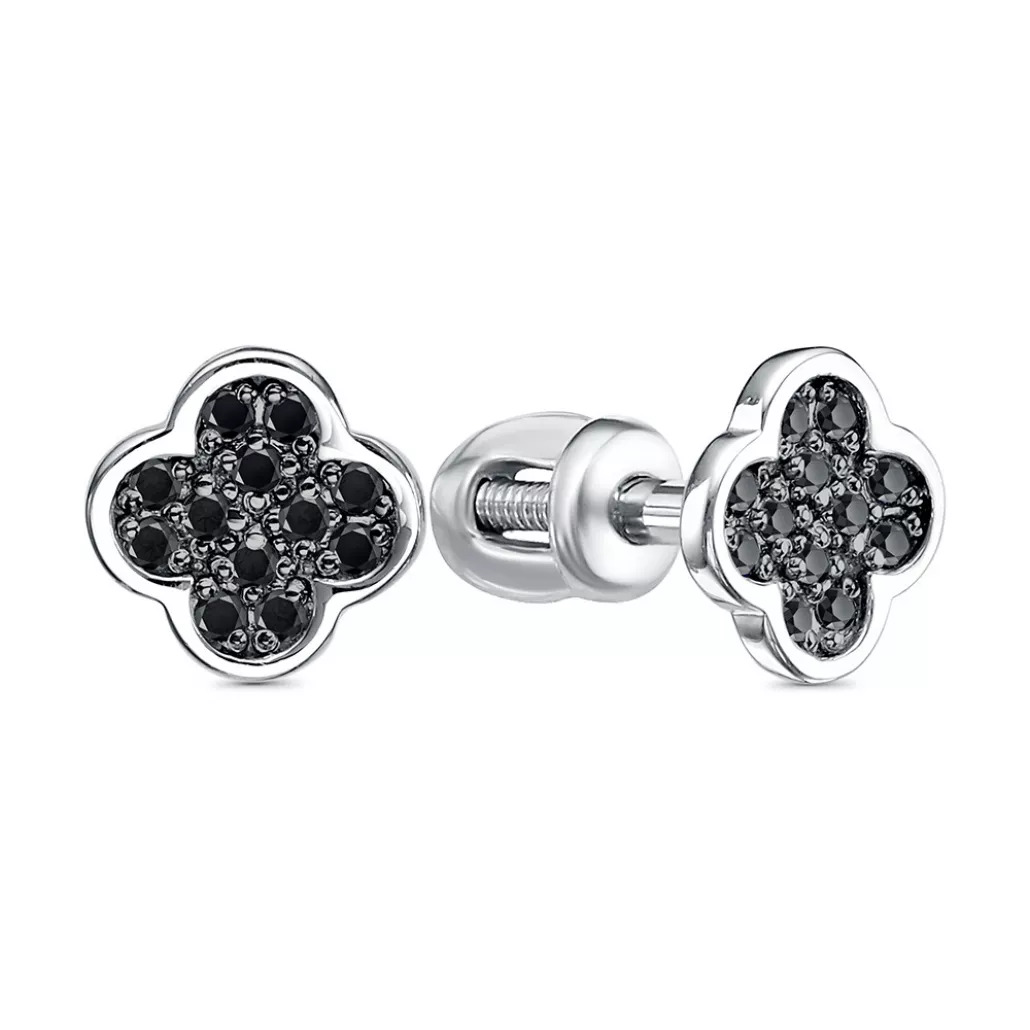 - Пусеты с фианитом из серебра