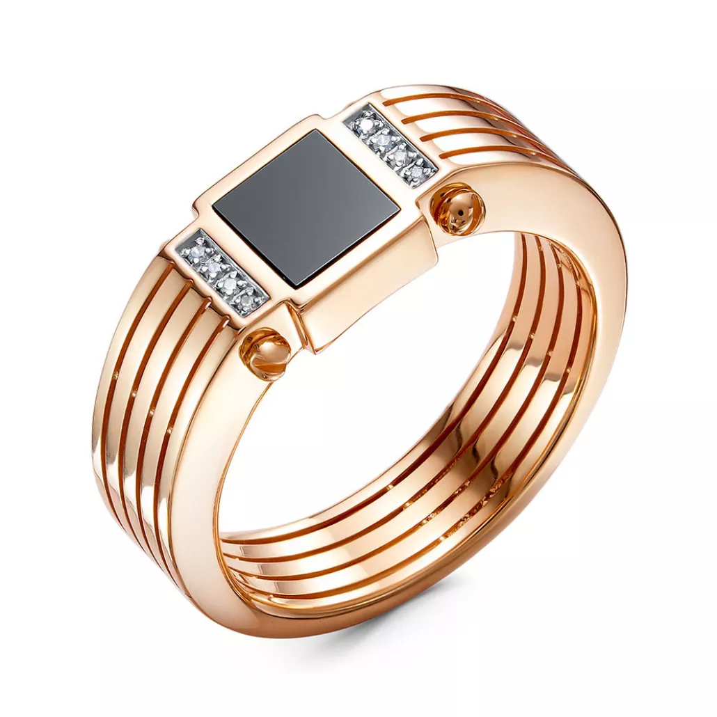 - Кольцо-печатка с ониксом и фианитом из золота