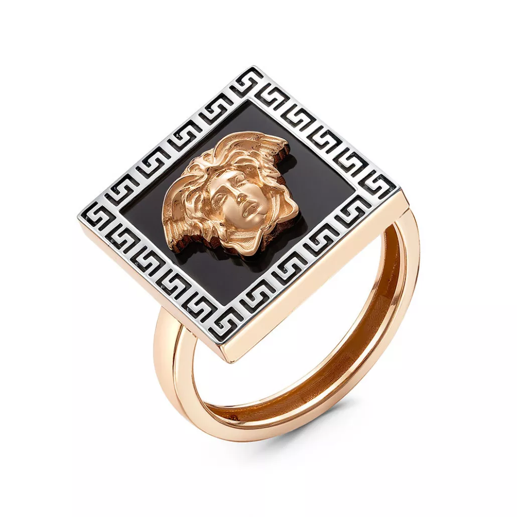 - Золотое кольцо 585, женское, с ониксом, размер 17