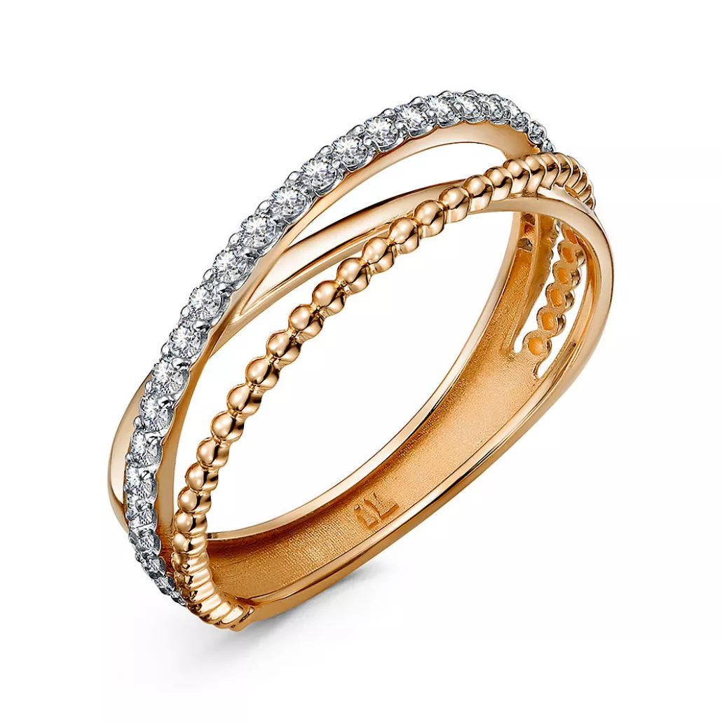 Золотое кольцо 585, женское, с фианитом, размер 16