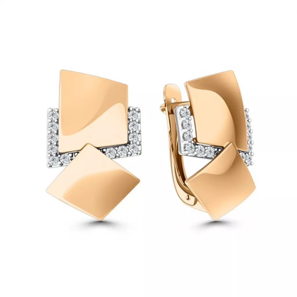 - Золотые серьги 585, женские, с фианитом