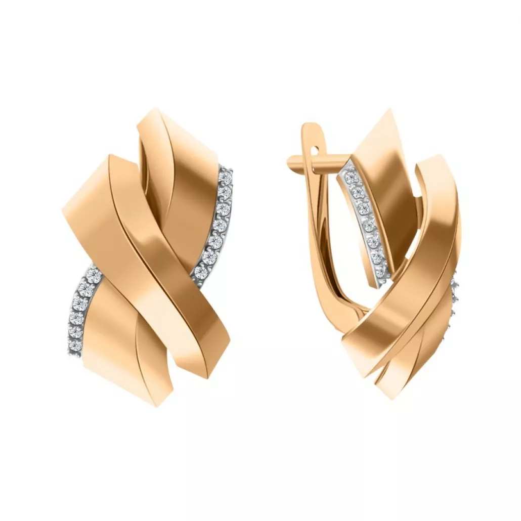 - Золотые серьги 585, женские, с фианитом