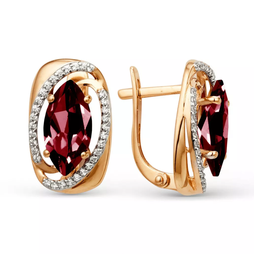 - Золотые серьги 585, женские, с фианитом и гранатом