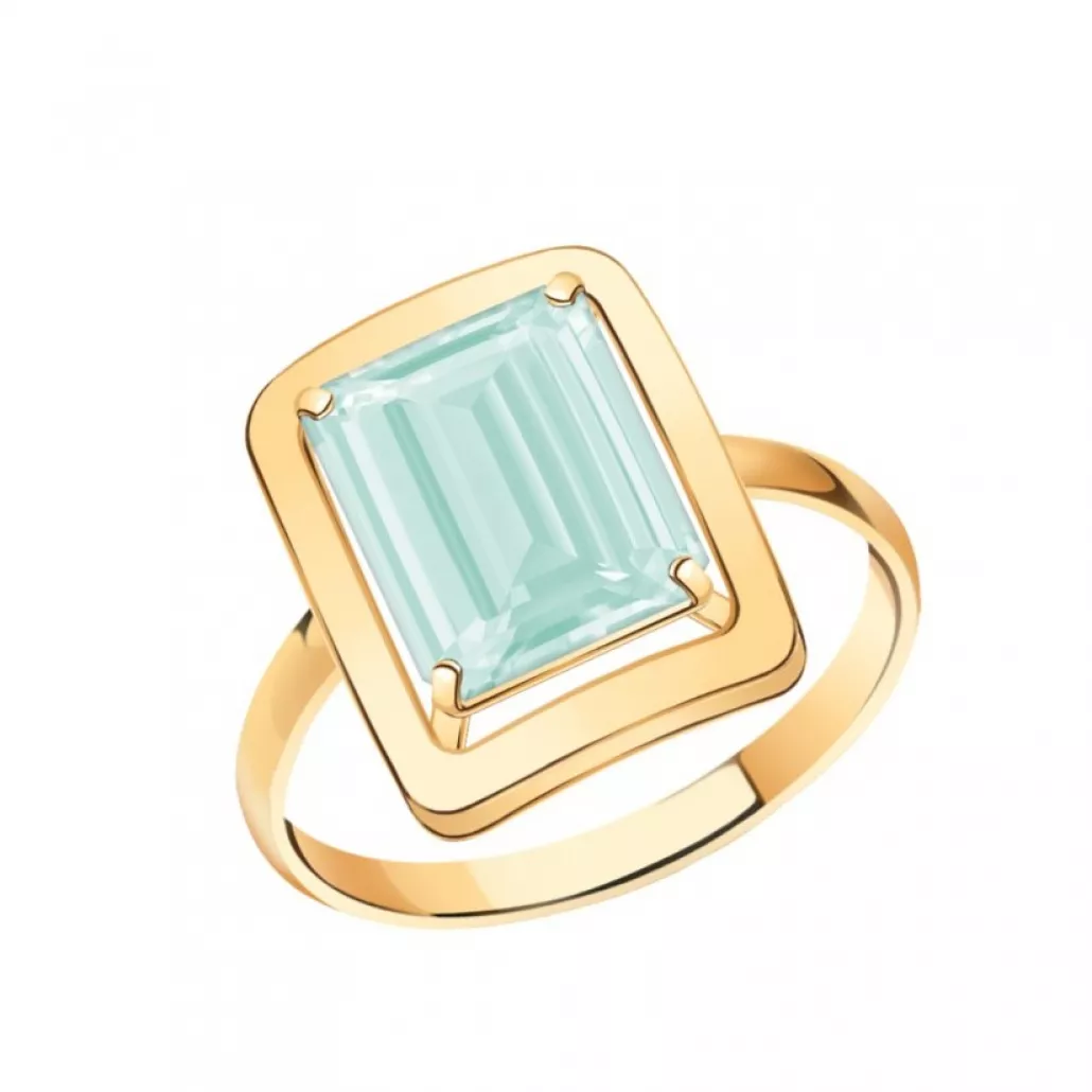 Золотое кольцо 585, женское, с аквамарином, размер 17.5