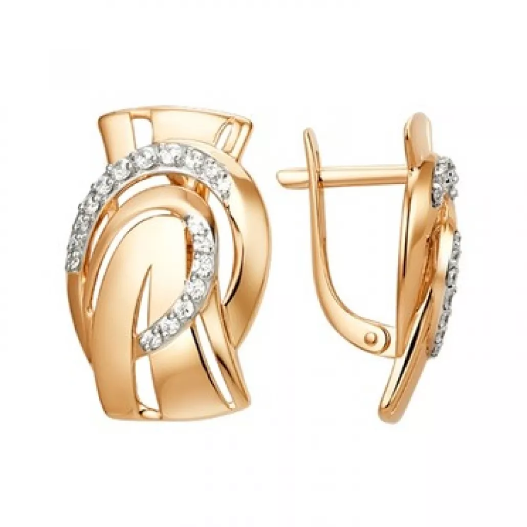 - Золотые серьги 585, женские, с фианитом